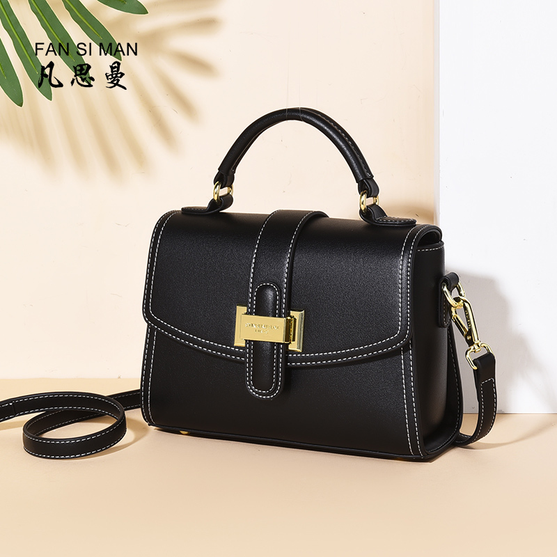 2018新款文艺范复古牛皮小方包箱形手提斜跨单肩百搭真皮个性女包